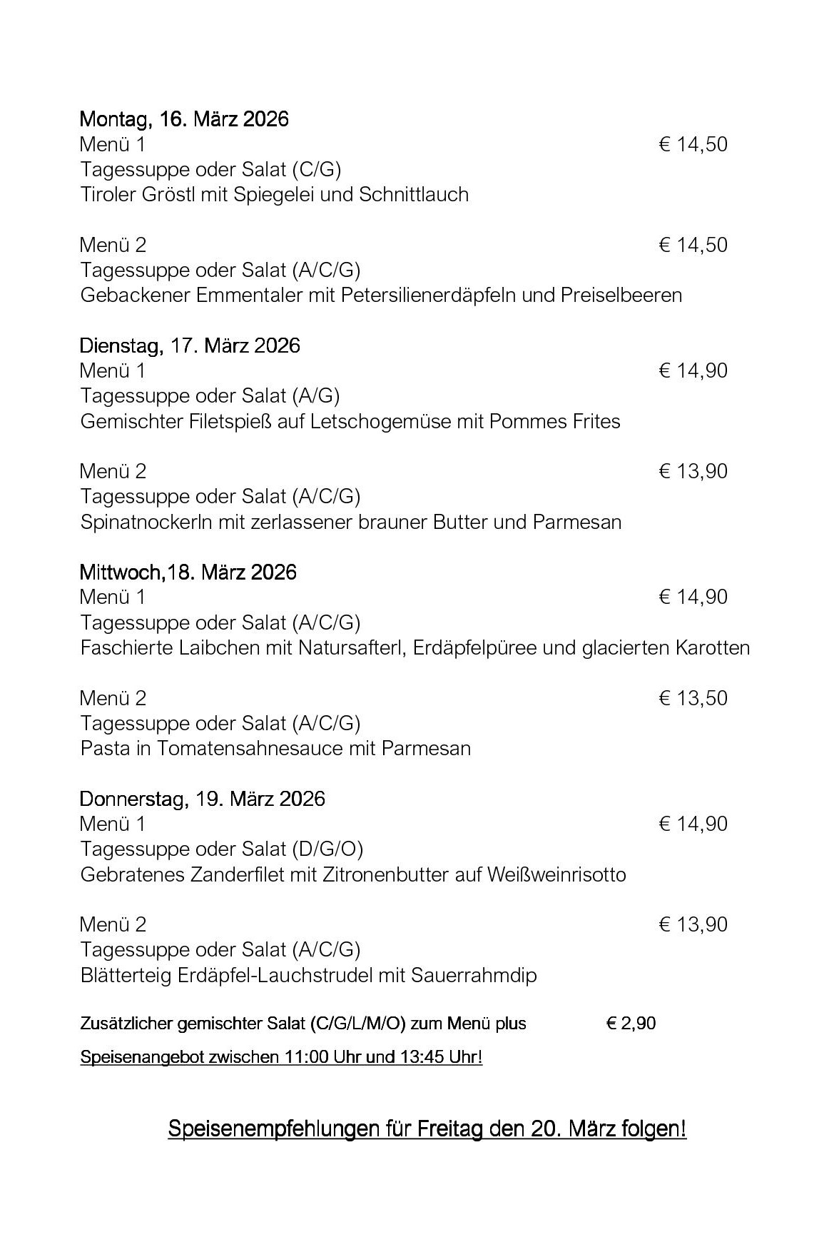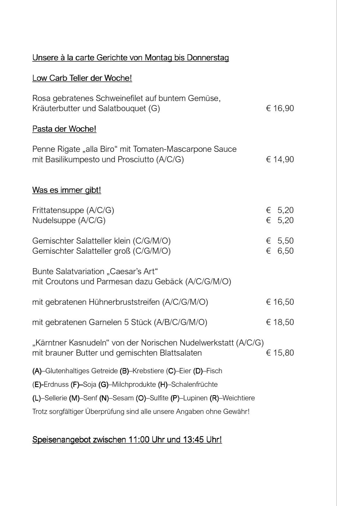 Unser Wochenmenü