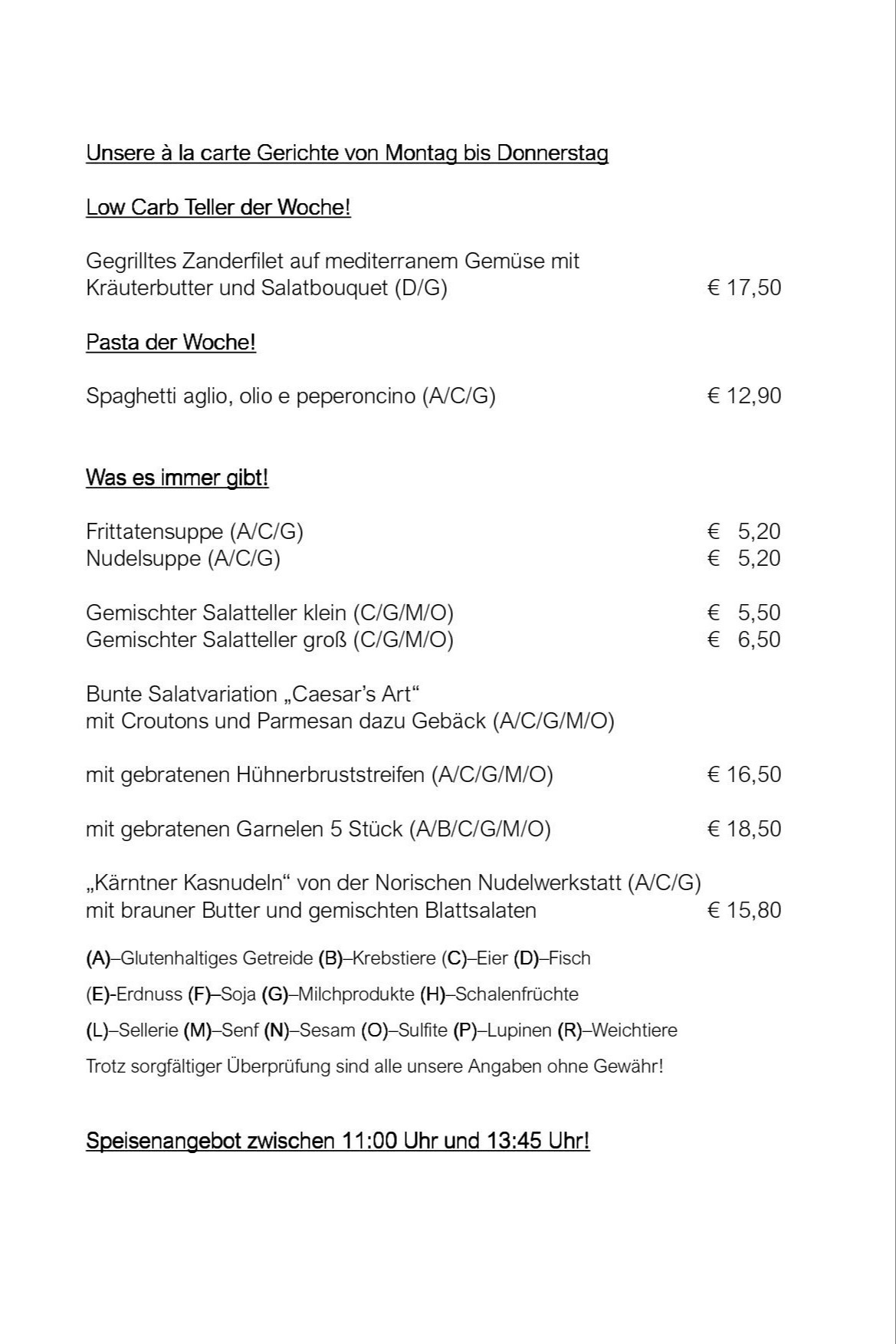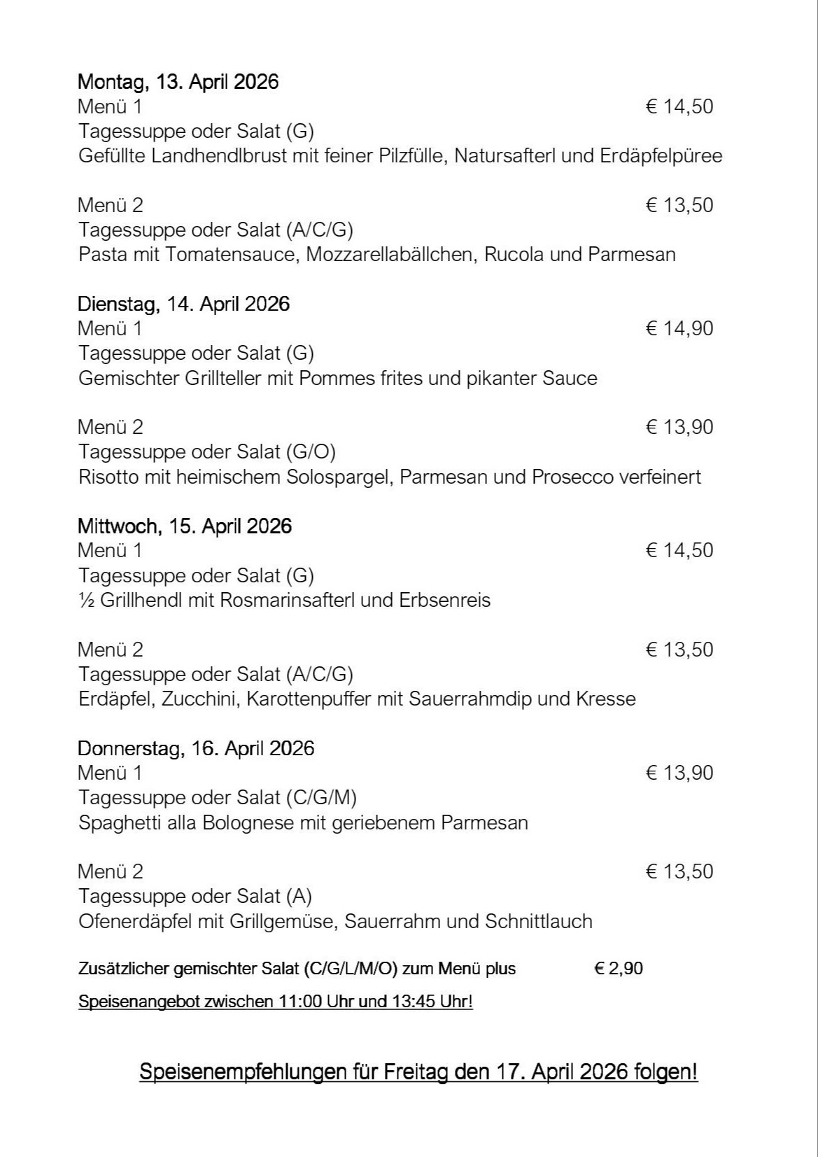 Unser Wochenmenü