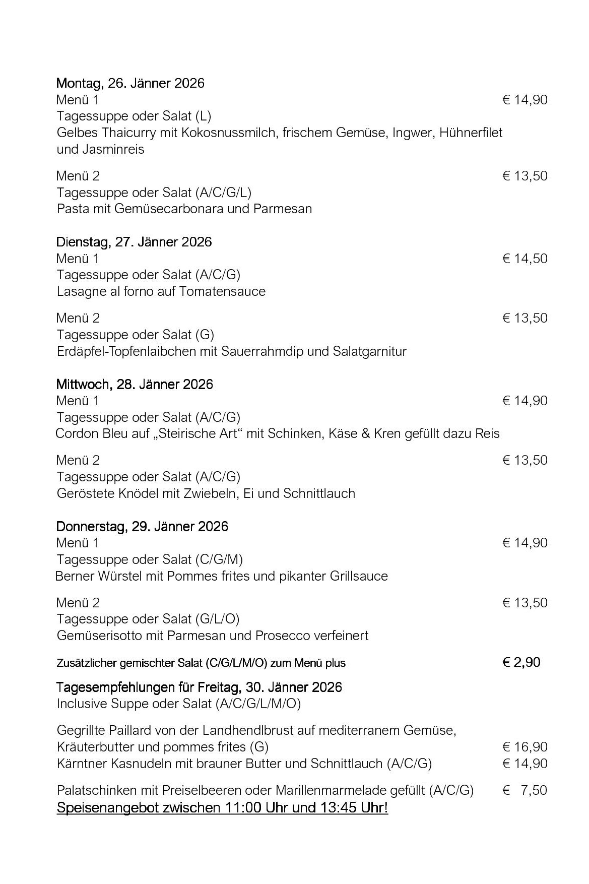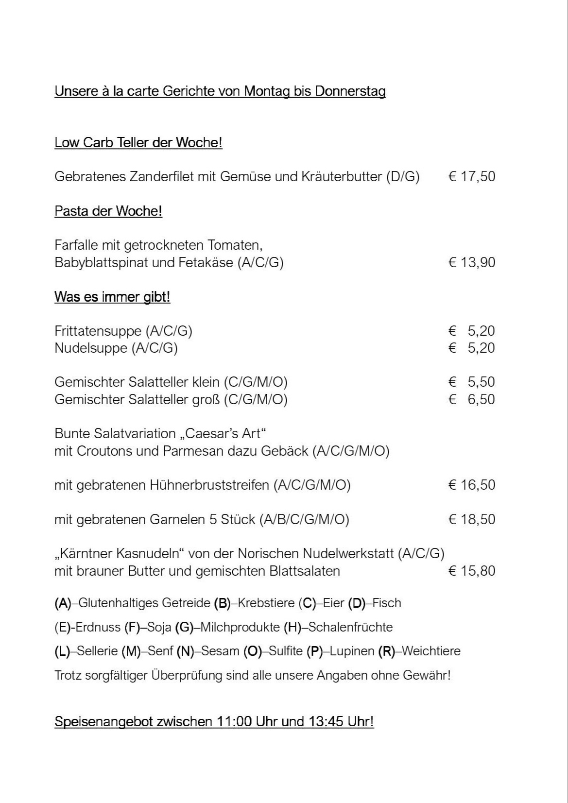 Unser Wochenmenü
